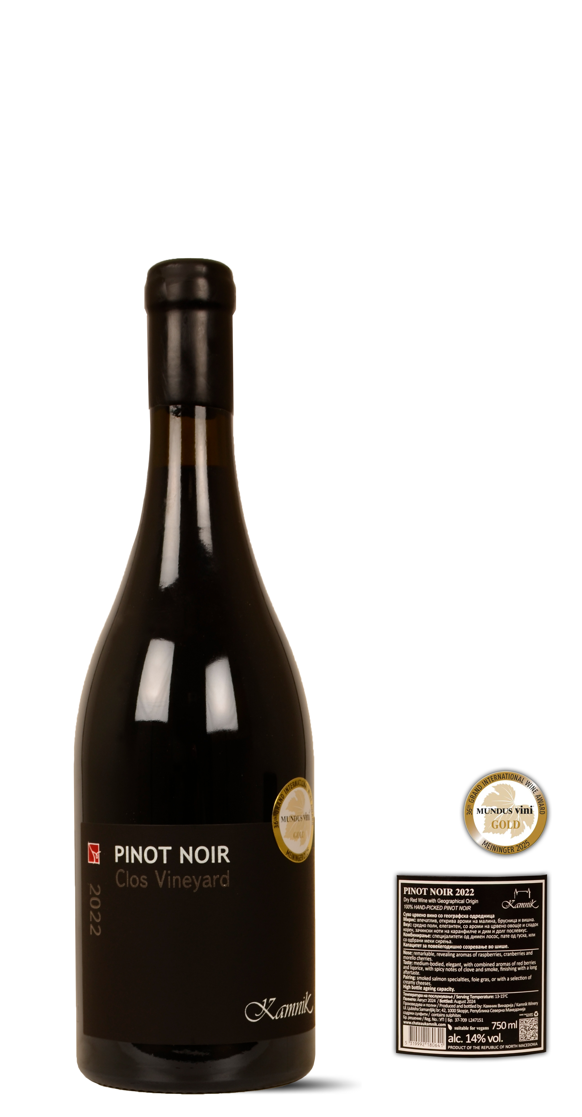 100% Pinot Noir. Raisins cueillis à la main. Fermentation classique thermorégulée avec macération sur peau. Le vin repose ensuite sur un mélange de chêne français et américain, après quoi l'assemblage suit ainsi que la mise en bouteille.